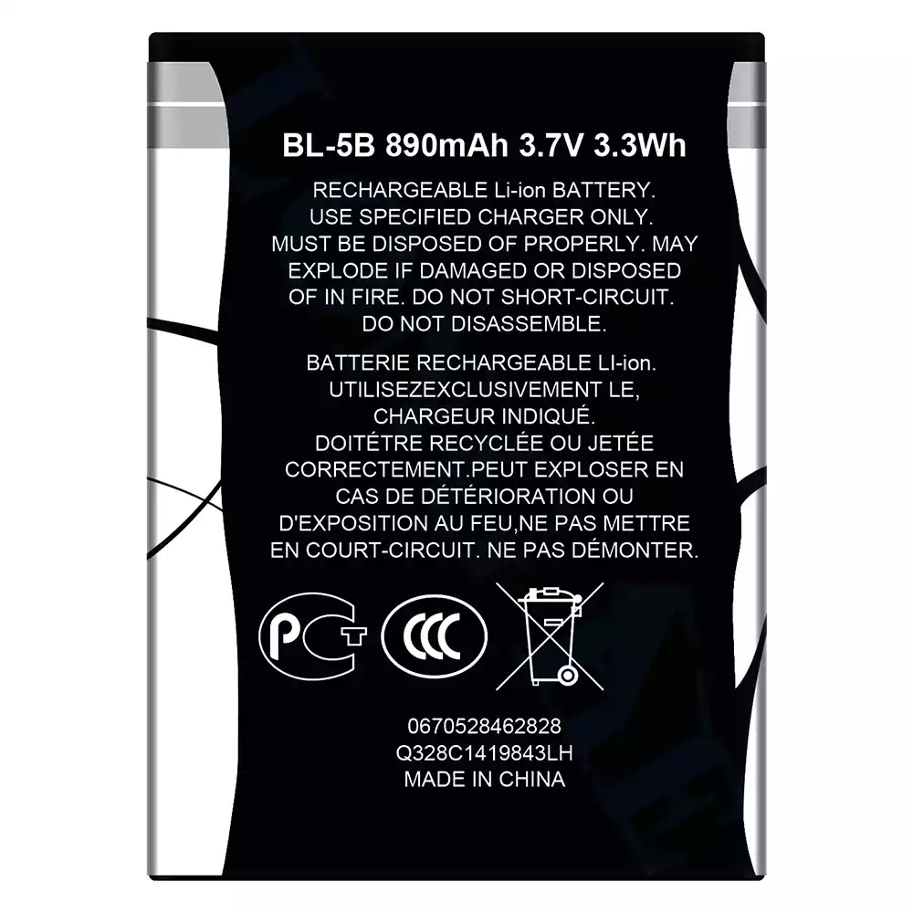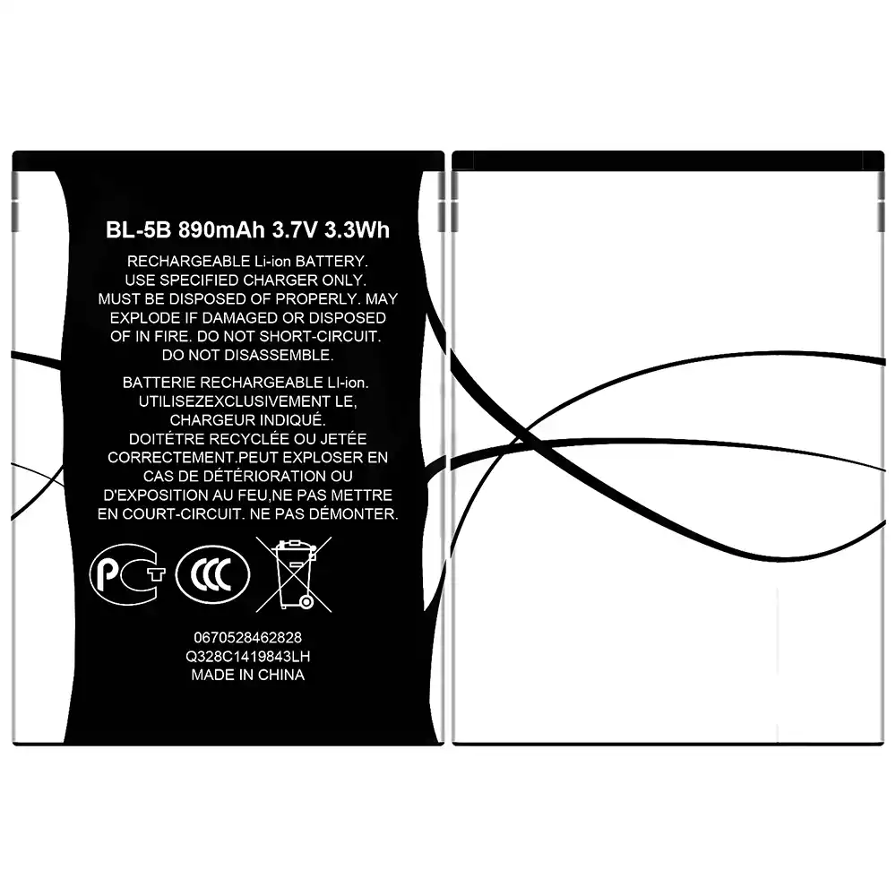 Akun malli BL-5B sovittaa Nokia 3230/3220/5140/5300/5320/7360/6120C/5070