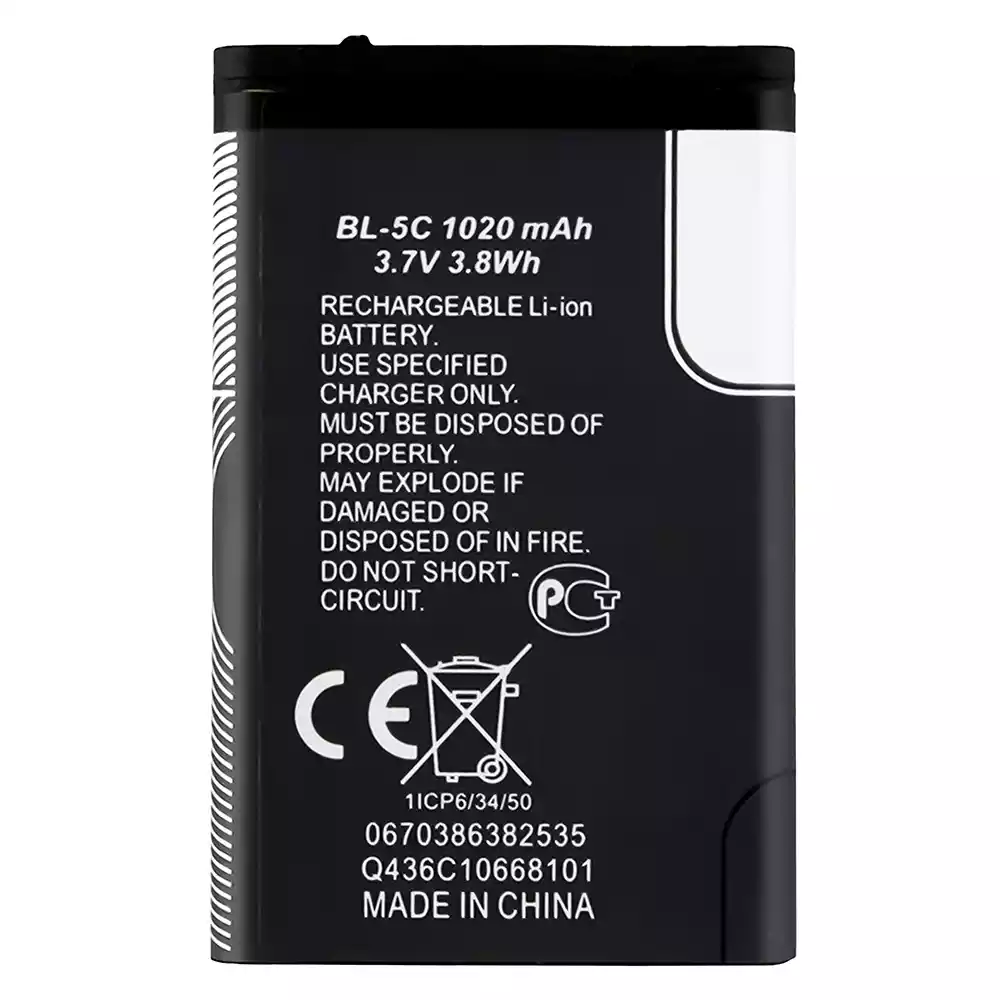 Akun malli BL-5C sovittaa Nokia Nokia 1101 / 1100 / 1110 / 1110i / 1112 / 1200 / 1208 / 1280 / 1600 / 1650 / 2310 / 2600 / 2700 / 3100 / 3110 / 3120 / 5130 / 6030 / 6230 / 6230i / E50 / E60 / N70 / N71 / N72