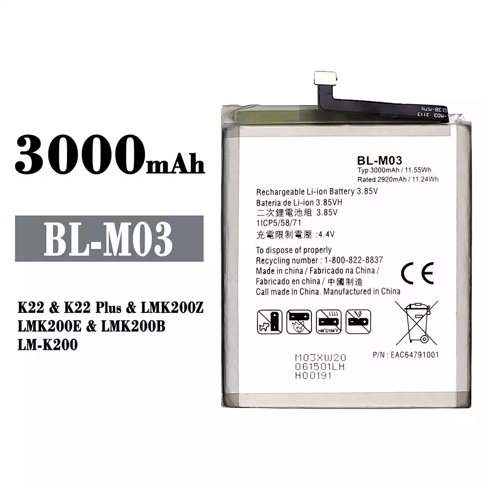Akun malli BL-M03 sovittaa LG K22 / K22 Plus / LMK200Z / LMK200E / LMK200B / LM-K200