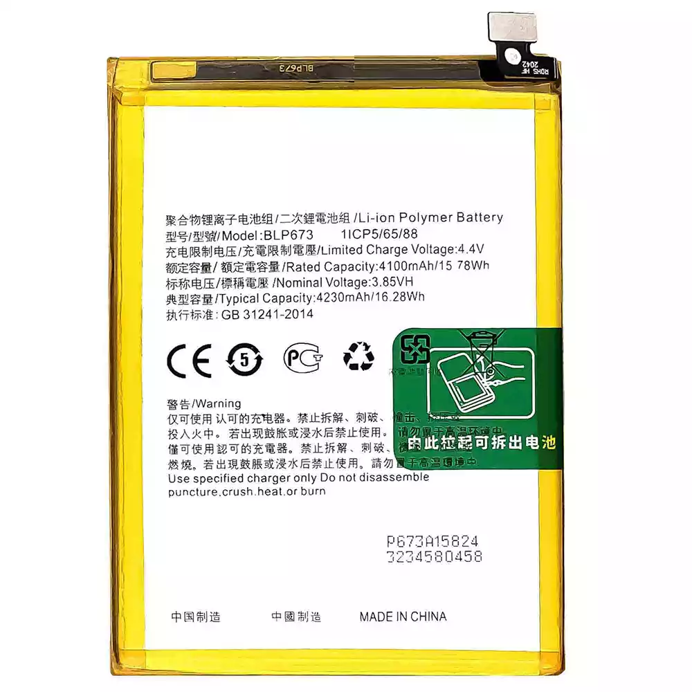 Akun malli BLP673 sovittaa OPPO A5 / AX5 / A7 / AX7 / A5S / AX5S / CPH1909 / Realme C1 2018 / A1603 / Realme C1 2019 / RMX1811 / A12 / A12E / A12S / A12 2020 / A31 2020 / Realme 2 / RMX1805 / RMX1809