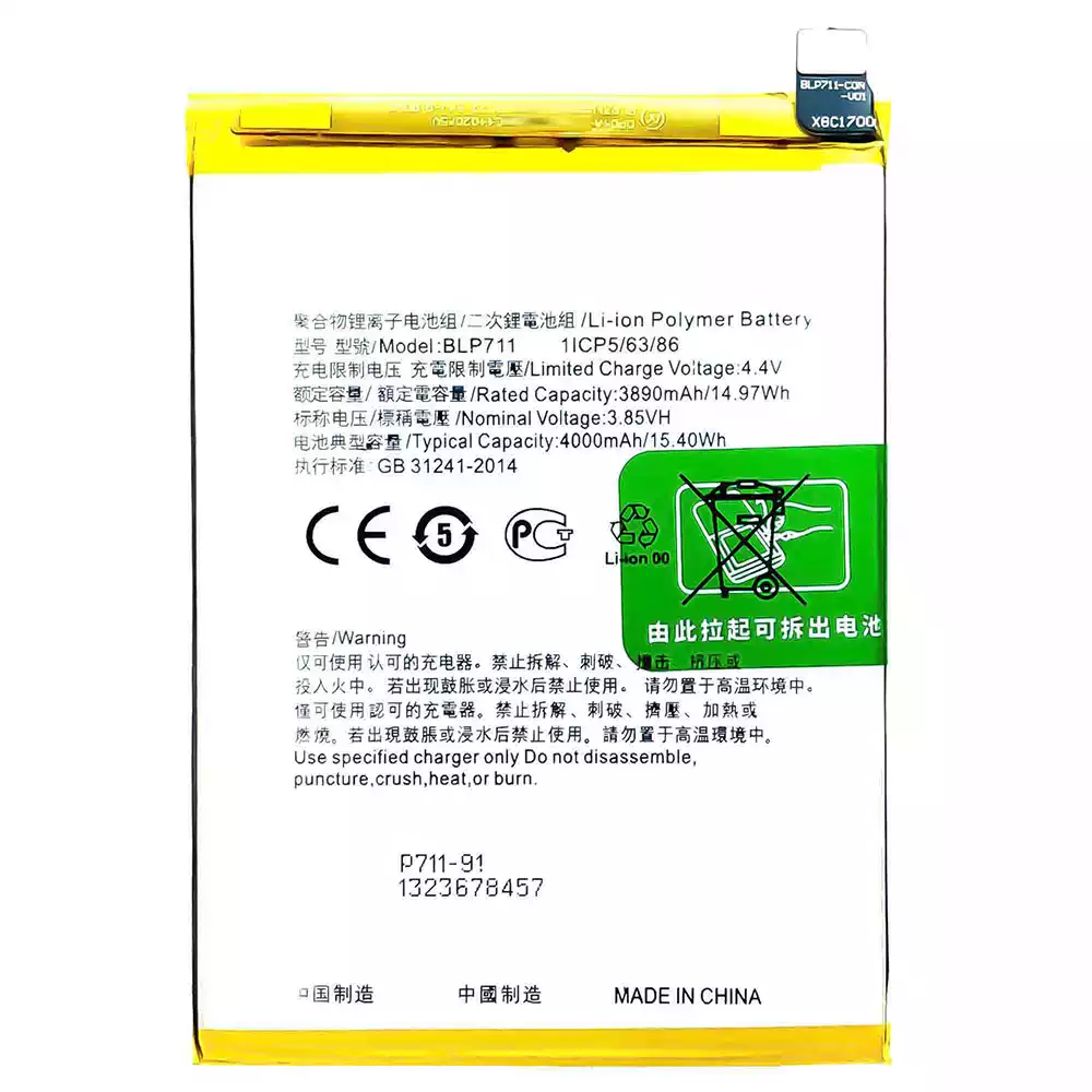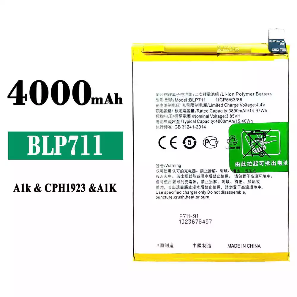 Akun malli BLP711 sovittaa OPPO A1K/CPH1923