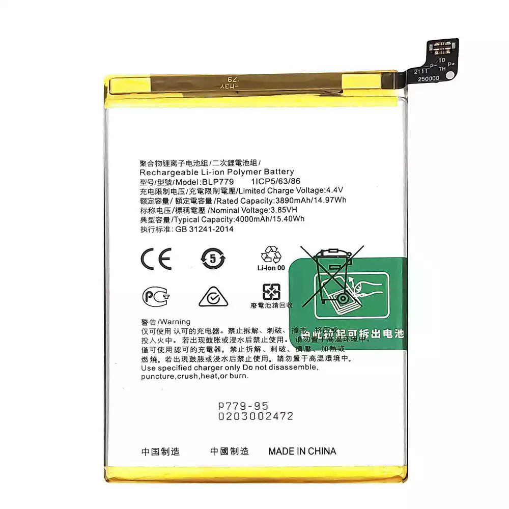 Akun malli BLP779 sovittaa OPPO A92S / A93 / F17 Pro / Reno 4Z 5G / Reno 4 Lite / Reno 4F