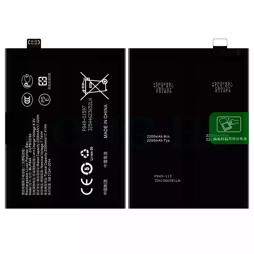 Akun malli BLP849 sovittaa OPPO Realme GT 5G