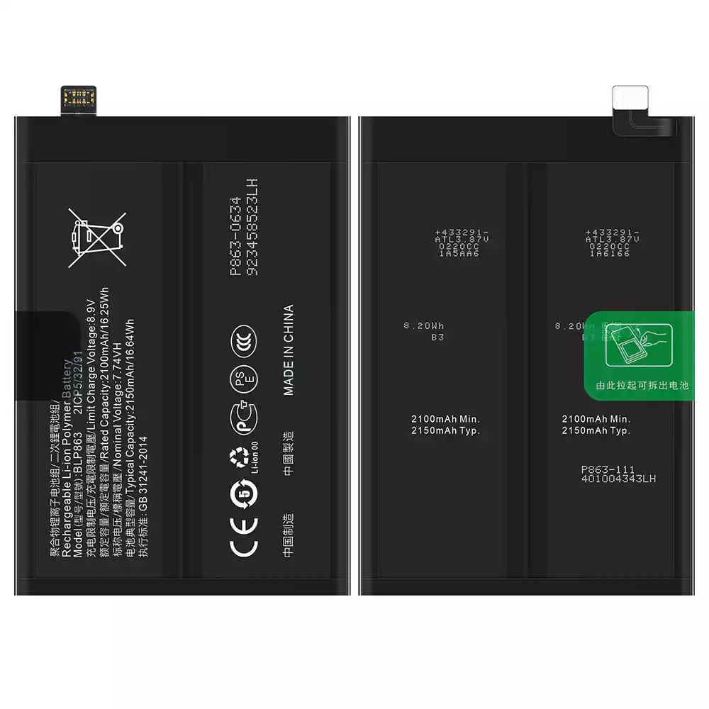 Akun malli BLP863 sovittaa OPPO RENO 6 5G / CPH2251 / PEQM00