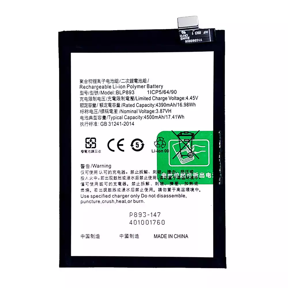 Akun malli BLP893 sovittaa OPPO Reno7 5G(China)
