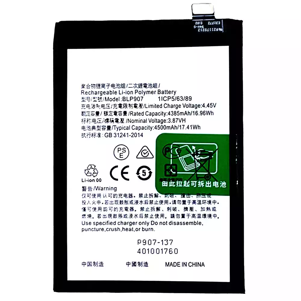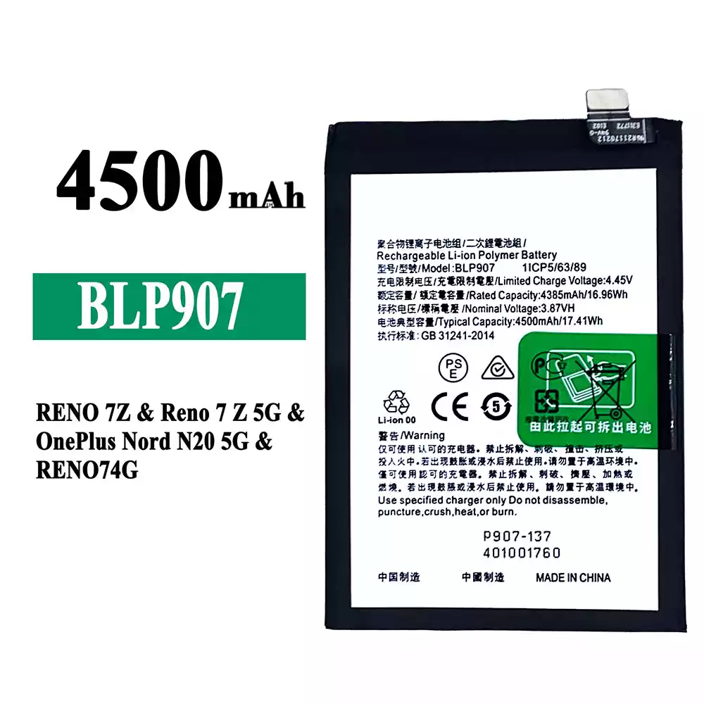 Akun malli BLP907 sovittaa OPPO RENO 7Z / Reno 7Z 5G / OnePlus Nord N20 5G / RENO 74G / RENO 8 4G