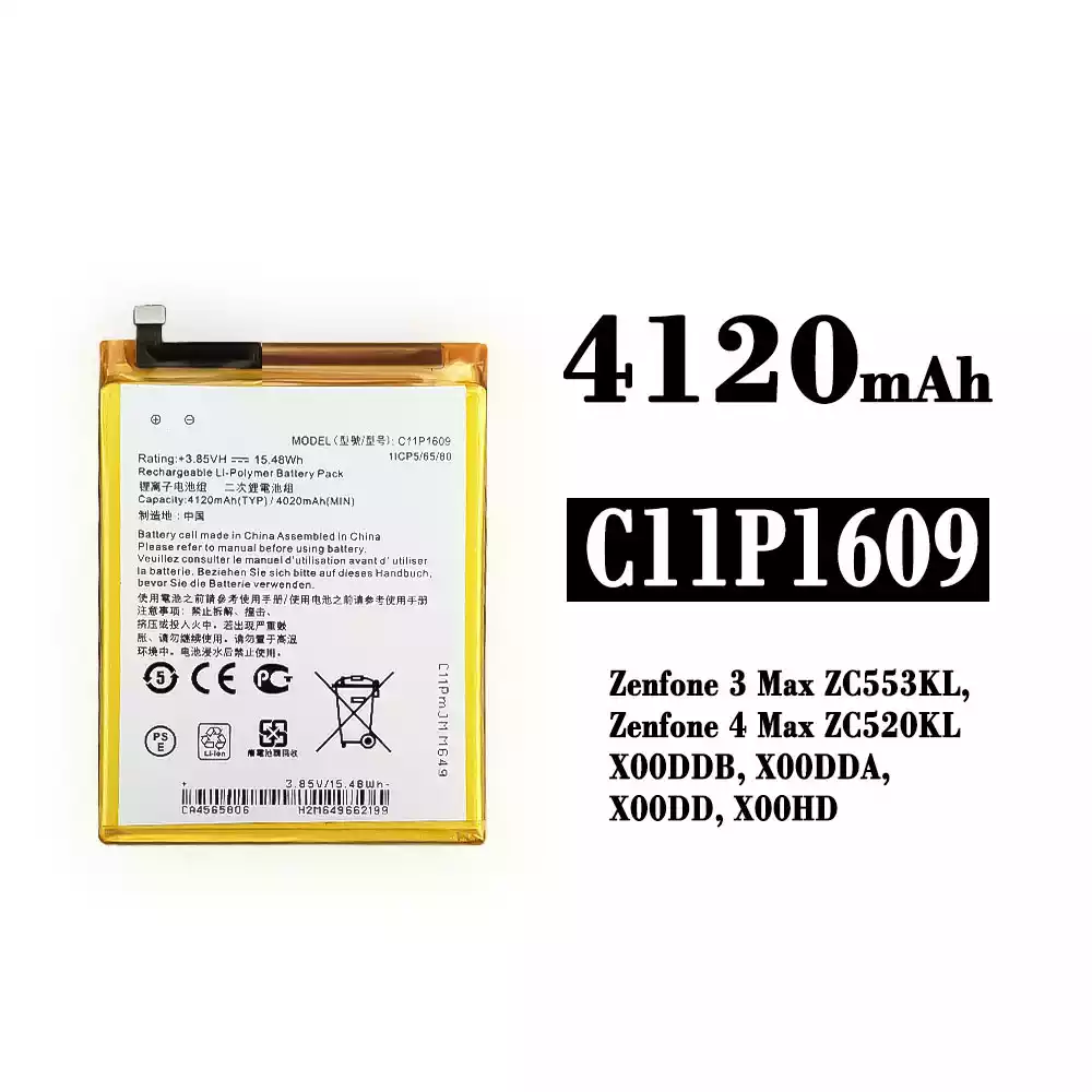 Akun malli C11P1609 sovittaa Asus Zenfone 3 Max ZC553KL / Zenfone 4 Max ZC520KL / X00DDB / X00DDA / X00DD / X00HD