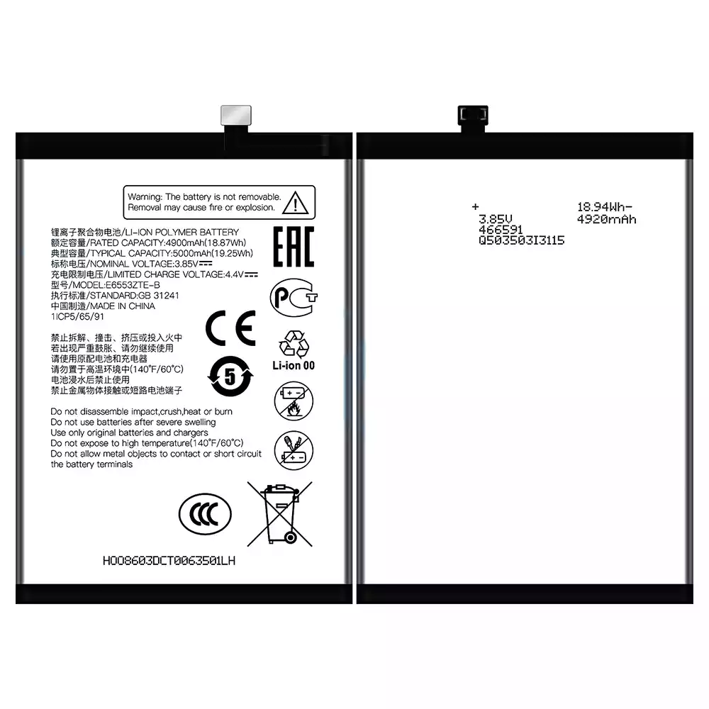 Akun malli E6553ZTE-B sovittaa ZTE V50