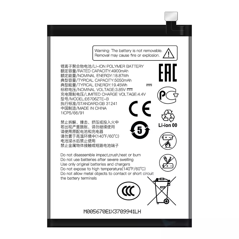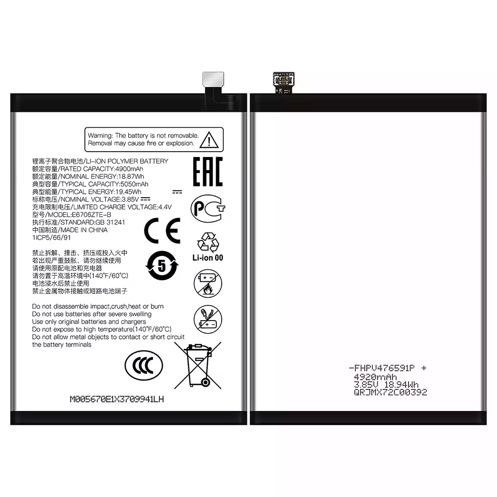 Akun malli E6706ZTE-B sovittaa ZTE Axon 60/60 Lite