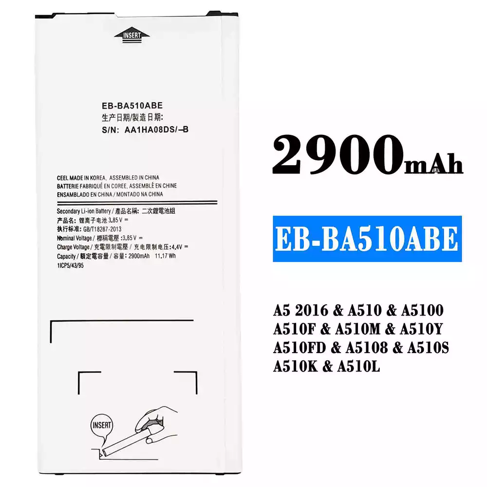 Akun malli EB-BA510ABE sovittaa Samsung A5 2016/A510/A5100/A510F/A510M/A510Y/A510FD/A5108/A510S/A510K/A510L