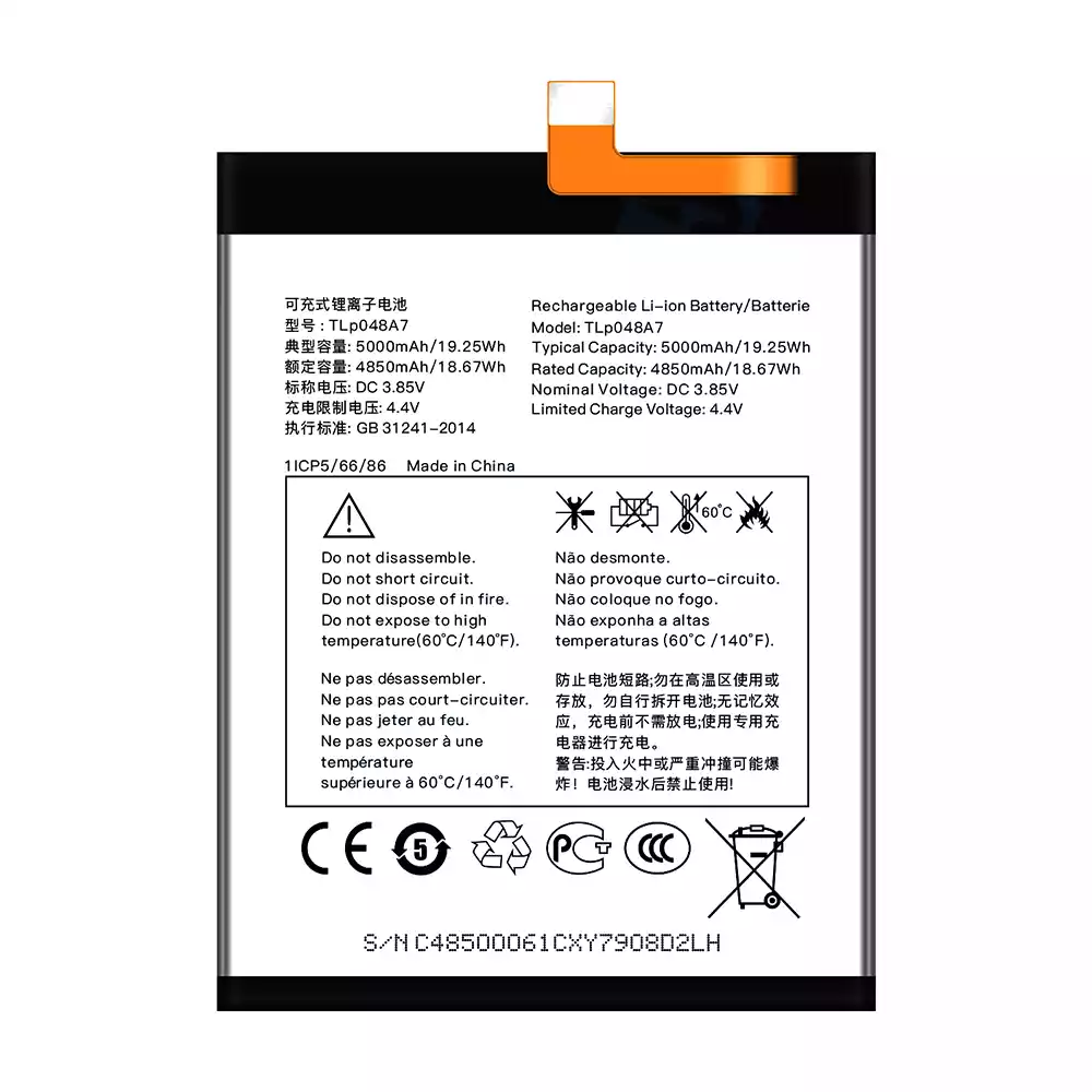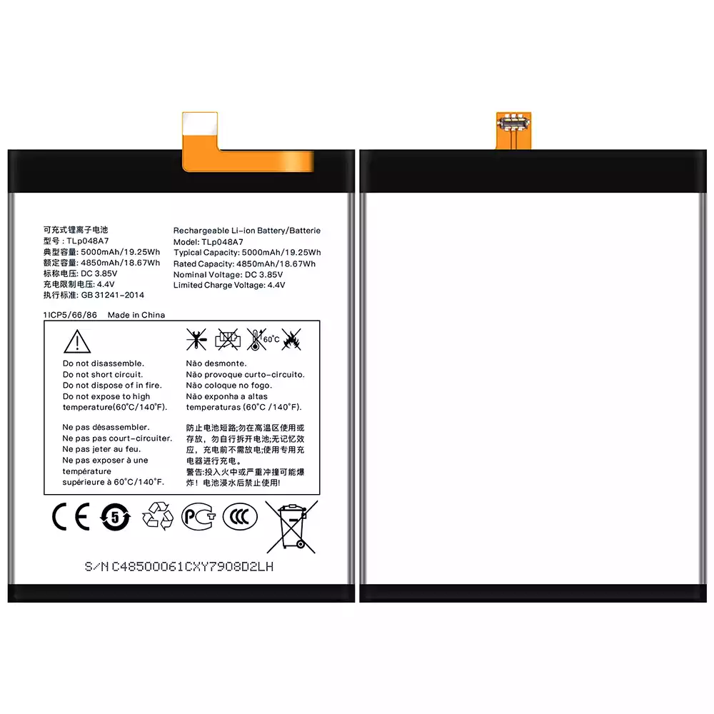 Akun malli TLP048A7 sovittaa Alcatel TLP048A1/20SE/30SE